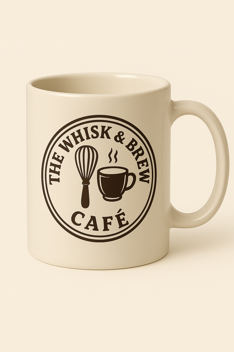 Start your day with a touch of charm and a whole lot of flavor. Our Whisk & Brew Cafe mug is more than just drinkware—it’s a cozy companion for your morning rituals and afternoon pick-me-ups. Featuring our elegant logo, this ceramic classic brings café vibes straight to your kitchen. Sip, savor, and show off your love for the place where whisked treats meet bold brews.